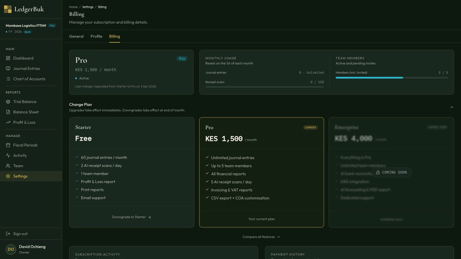 Sign up, set up your organization, and upgrade to Pro via M-Pesa