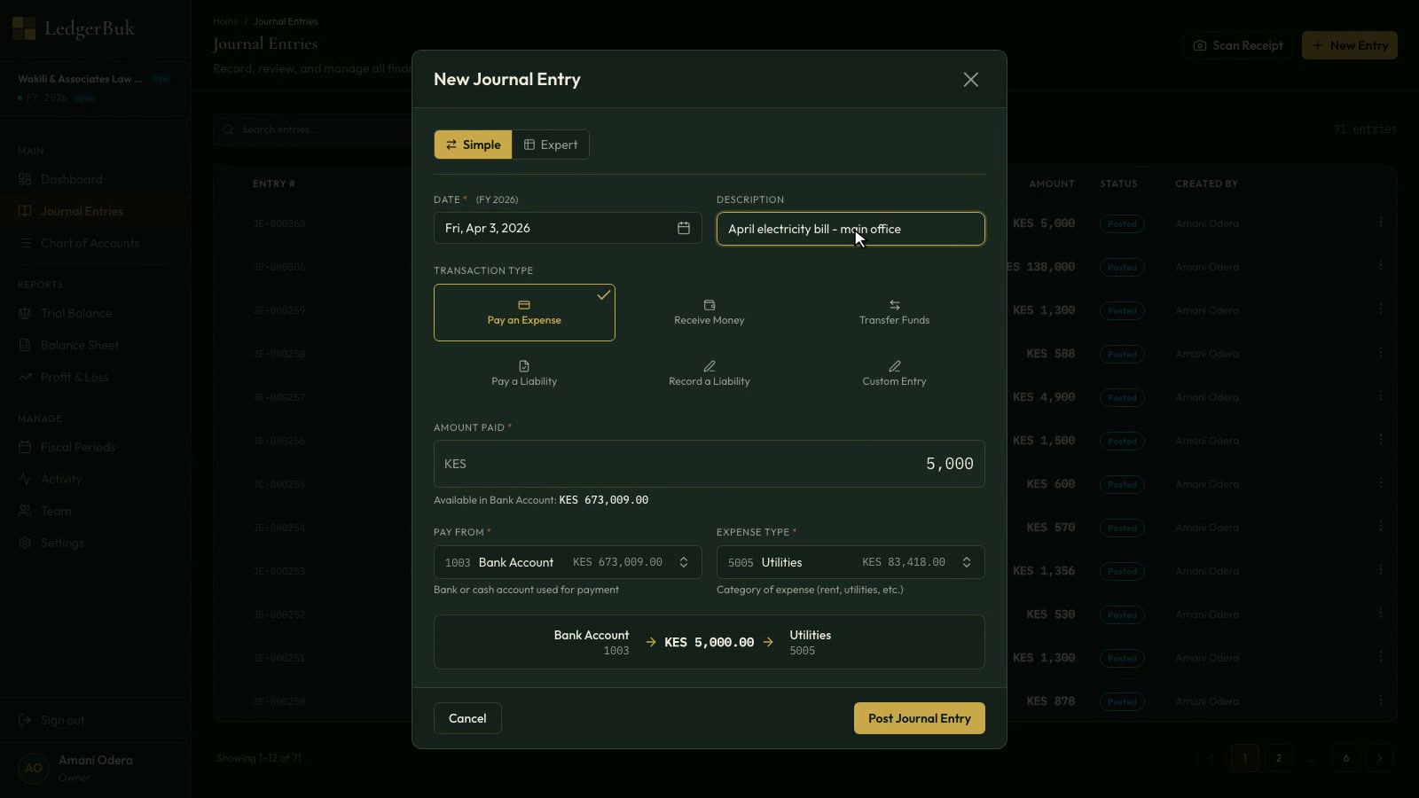Record a business expense in seconds using guided simple mode